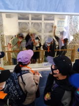1月から延期していた社会科見学を、3年生の健康状態が安定していることをふまえて、ようやく実施することができました。この1年間で、バスに乗って初めて校外学習ができて、子供たちはとてもうれしそうです。杉並区の学習をしてきた3年生、まとめとして和田堀池と大宮八幡宮を見学し、和田堀公園でミッションに答えながらグループ散策をしました。メモを取ったり写真を撮ったり答えをみんなで考えたり、子供たちは一生懸命です。キツツキを発見し、梅もきれいに咲いて、暖かい春の日差しの中を楽しく過ごしてきました。道路、鉄道、川、清掃工場、区役所、バスの中からも見学しました。 |