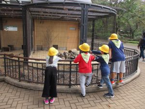 晴天のもと井の頭自然文化園へ生活科見学に行ってきました。モルモットと触れ合ったり、グループに分かれて園内の動物を見たりしました。初めてのグループ活動でしたが、時間を守って仲良く行動することができました。子どもたちの心の成長が実感できた生活科見学でした。