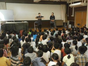 語り手たちの会 10月18日に『語り手たちの会』の方をお招きしてお話会を開きました。 お話ししていただいた物語は、 ・大きいわにさん 小さいわにさん ・ちゃ・くり・かき・ふ ・金の足のひよこ ・5本ゆびさん ・わらしべ長者 の5つでした。 表情豊かでとてもおもしろい菅野さんと野田さん。お二人のお話に引き込まれ、じっと聞いたり大笑いしたりの1年生。あっという間の1時間でした。 コメントは受け付けていません。 PTA2017年度第4回常任委員会報告書 学校だより10月号(510号)