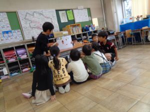 体の大きさ、種類、エサ、育て方などたくさんのことを調べてまとめてくれていたので、とても詳しく知ることができました。また、ペープサートを作っての劇・クイズ形式・タブレットの使用など様々な方法で上手に発表する3年生の姿を見て、『3年生ってすごい』『ぼくたちもあんな風に発表できるように頑張ろう』と感想をもっていました。来年が楽しみです。
