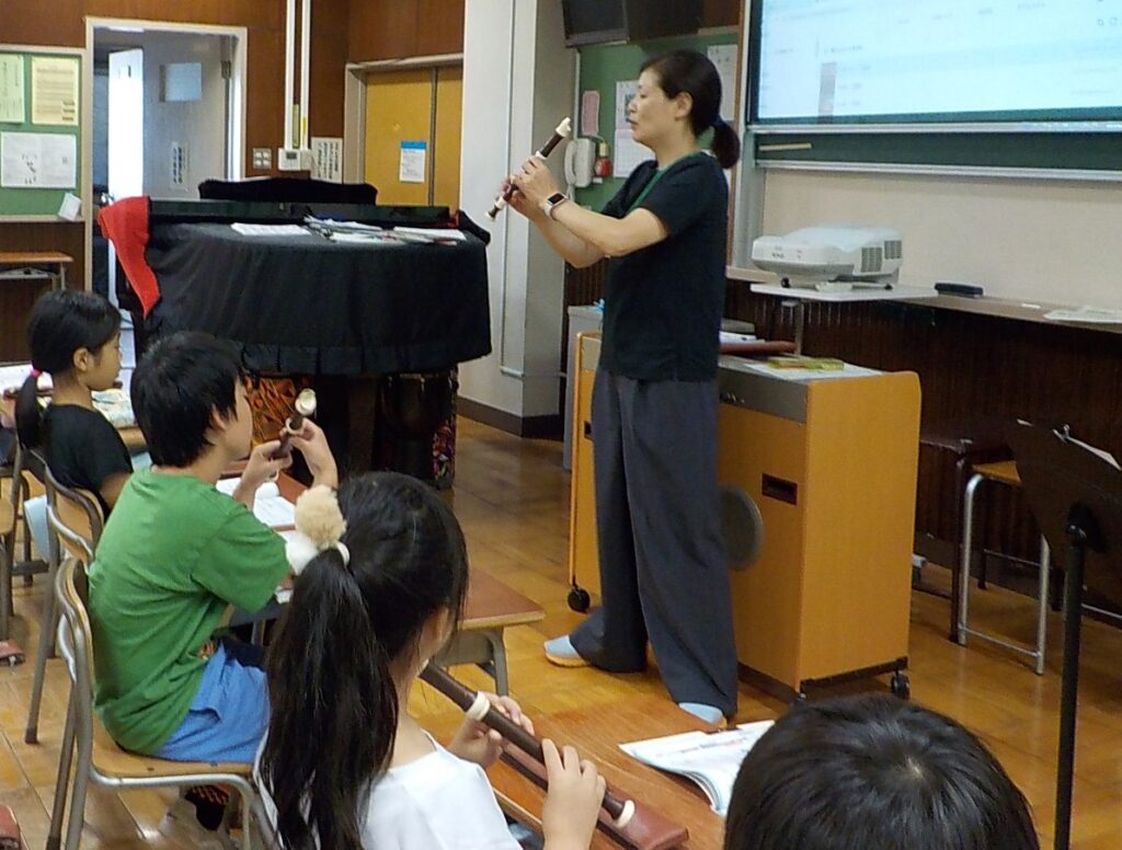 3年生 リコーダーに初挑戦! リコーダーの学習が始まりました。指で穴を押さえて音を出すのは難しく、はじめはゆっくり一音ずつ出せるように練習をしていました。休み時間には、教室で吹いていたり、音楽室へ練習しに行ったりと、熱心に取り組んでいました。パフの練習が始まると、「家で練習して来た!」「だんだん覚えてきたかもしれない。」という言葉が聞こえ、二学期の音楽会に向けて頑張っている様子が見られました。 コメントは受け付けていません。 1年生 水遊びとシャボン玉遊びをしたよ 5年生 和太鼓出前授業