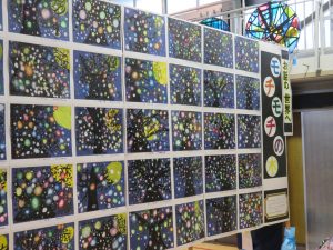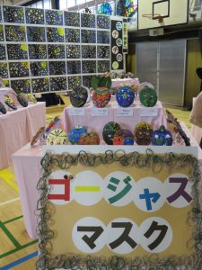 三年生の展覧会は、「モチモチの木」と「ゴージャスマスク」を作りました。