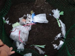 掘り出すのは2か月後を予定しています。埋めたごみがどう変化するのか、結果が楽しみです。