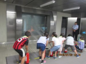 防災館では、災害についてやその備えについて学習しました。実際に災害が起きたときにはどうしたらいいのか、避難の仕方や消火器の使い