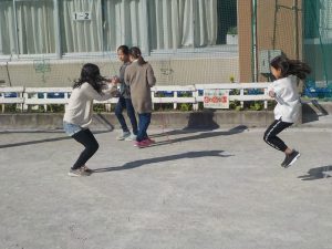 4年生 縄跳び旬間 1月28日から2月6日まで縄跳び旬間でした。 自分の目標に向かって、友達と声を掛け合いながら取り組みました。 いろいろな技に挑戦し、「先生、見てください。」と二重跳びや交差跳び、あや跳びなどを披露してくれました。4年生になってできるようになった技も増え、喜ぶ姿が見られ成長を感じました。 期間が終わっても縄跳びを継続していけると良いなと思います。 コメントは受け付けていません。 書き初め 保育園児との交流会がありました。