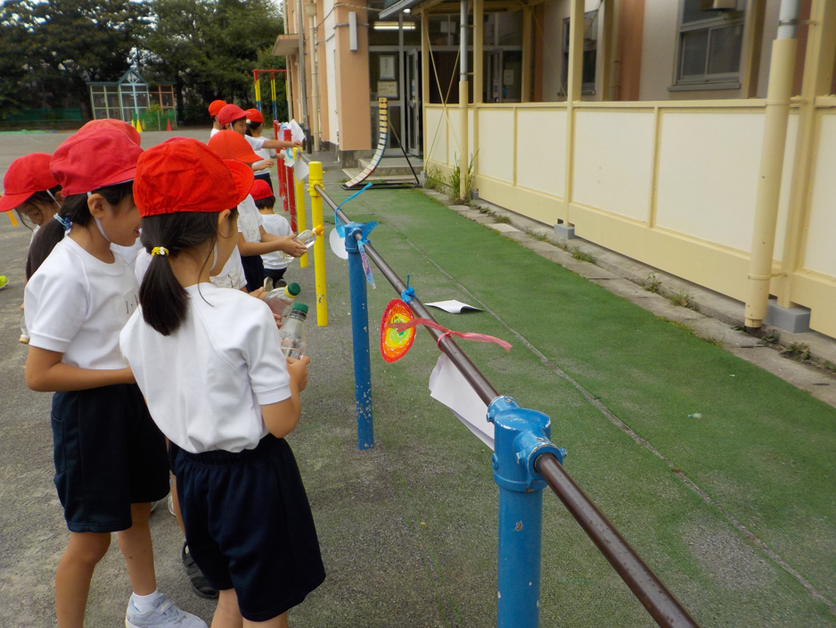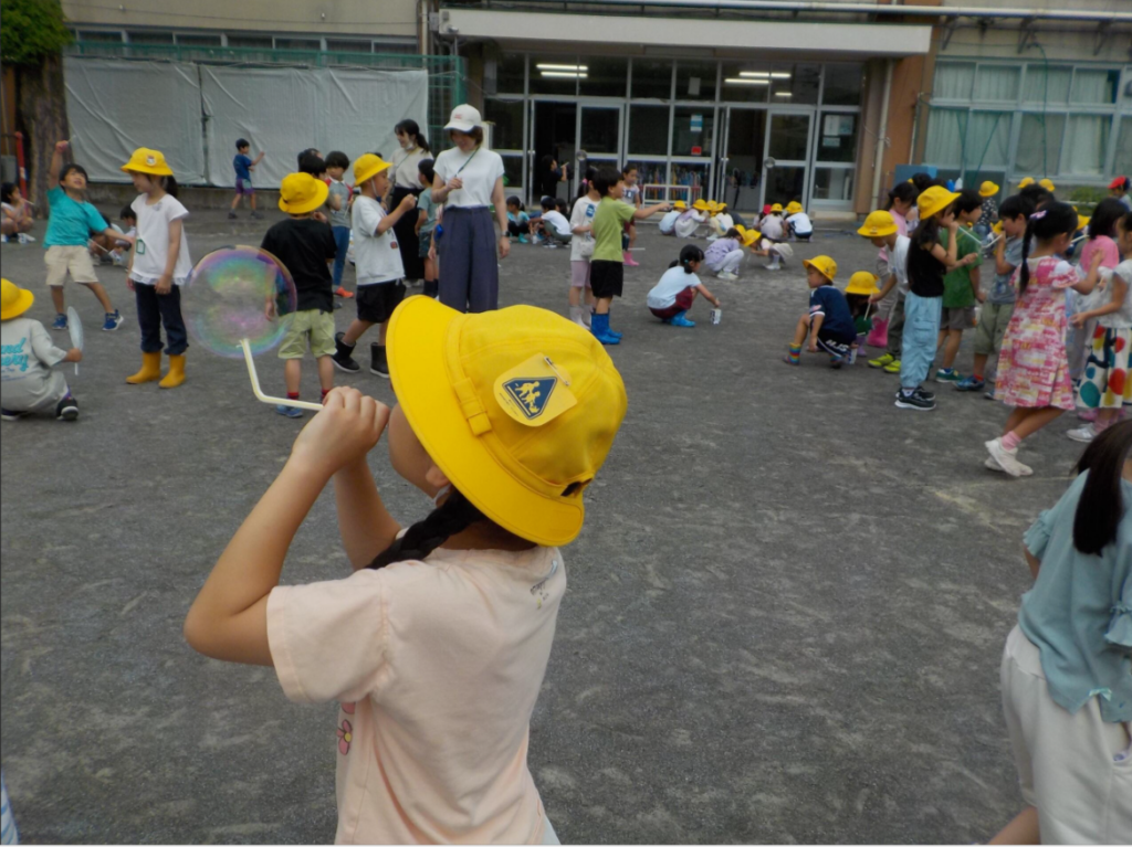1年生 水遊びとシャボン玉遊びをしたよ 生活科の学習で、校庭で水遊びとシャボン玉遊びをしました。水遊びでは、的当てをしたいということで、手作りの的を作り、水鉄砲やペットボトルで遊んだり、空に向かって水を飛ばして、水の動きを楽しんだりしました。シャボン玉遊びでは、上手にシャボン玉を作るために息遣いを工夫したり、シャボン玉同士を合体させたり、大きなシャボン玉を作ったりして、楽しみました。少し曇り空の日でしたが、夏らしさを感じながら、楽しむことができました。 コメントは受け付けていません。 1年生 とうもろこしの皮むきをしたよ 3年生 リコーダーに初挑戦!