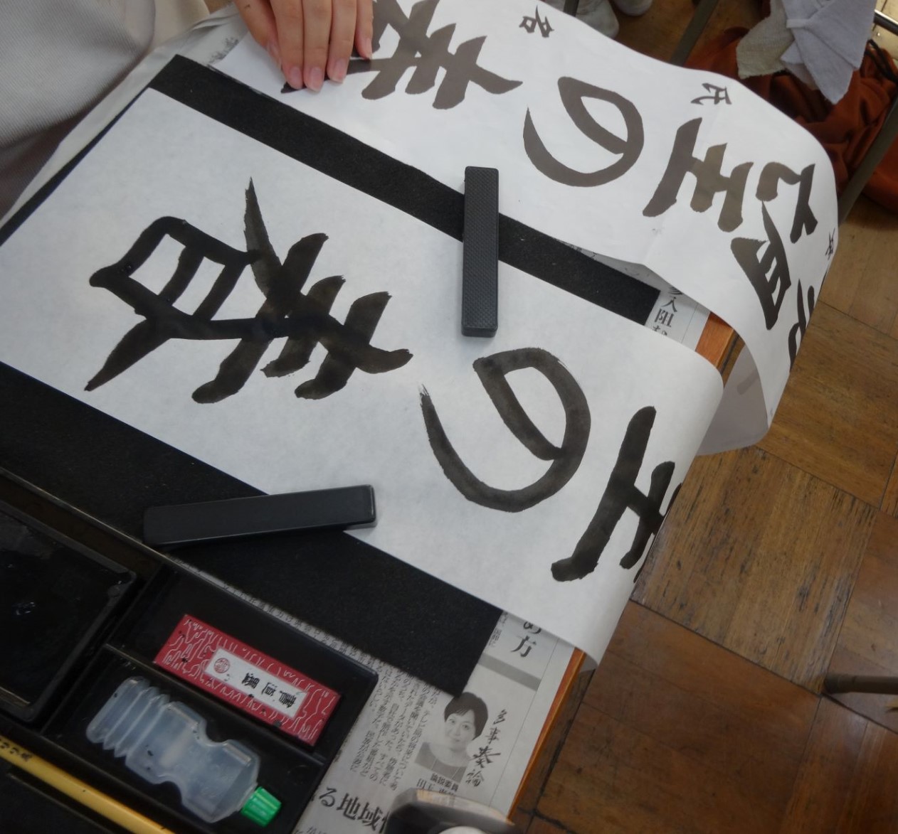 静まり返った教室で、文字の大きさやバランスを考えながら、一文字一文字丁寧に書き上げました。