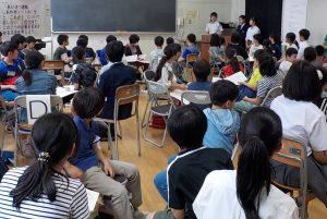 5月15日(水)、高井戸中学校で「生徒会・児童会 未来会議」が行われました。4~6年生の代表委員児童が参加し、小中連携の取組について意見を交わしました。『よりよい人間関係づくり』という共通テーマのもと、高井戸中学校の生徒会、高井戸東小学校の児童会、本校の児童会が一堂に会し、これからの取組について考えました。小グループに分かれることで、どの子にも中学生や他校の小学生と話す機会があり、その中ですすんで意見を話すことができた子もいました。今後、各校に持ち帰り、あいさつ運動など具体的な活動として、小中連携の取組を進めていきます。