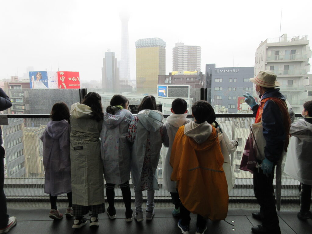 天気に恵まれず、雨の浅草となりましたが、一人ひとりがしっかりとボランティアガイドさんの話に耳をかたむけ、どの班も落ち着いて行動する姿が見られました。浅草の歴史や人気の観光地になった理由など、教科書では学ぶことができないたくさんの気付きがありました。お世話になったガイドさんから、あいさつの仕方や話の聞き方がすばらしいとたくさんほめていただき、5年生にむけて成長を感じた一日でした。