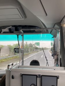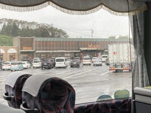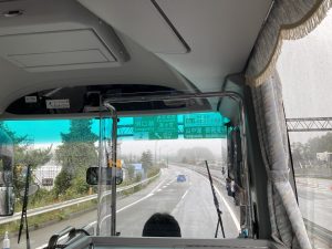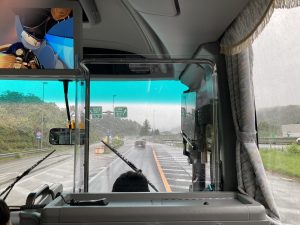 ☔️あいにくの雨ですが7時半に井の頭通りを出発し中央道を河口湖方面に向けてバスは進んでいます。子どもたちはバスレクを楽しんでいます。