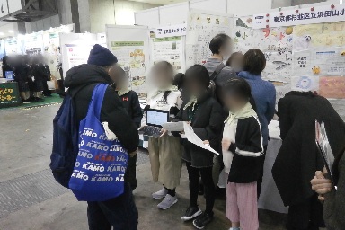 お客さんの中には、かつて浜田山に住んでいた人、毎年本校の発表を楽しみに来場される方、浜田山地域の大型スーパーさん等も会場に来てくださり、児童のプレゼンを聴いていただきました。お手伝いとして引率してくださった保護者以外にも、一般入場者として発表を聴きに来てくださった保護者もたくさんいて、大変ありがたかったです。4~5人のグループで、最低2回(1回数分のプレゼン)発表することができました。(画像は学校備品のオリンパス製校長用デジカメで撮影しています。)
