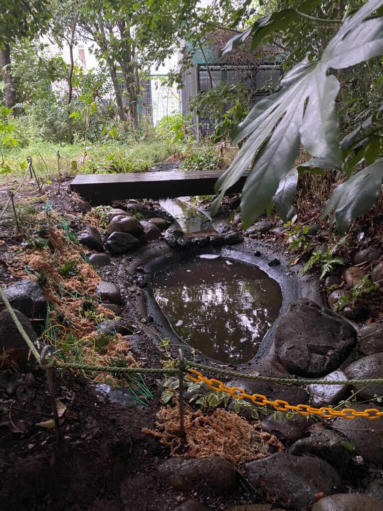 生物群集の生息空間を意味するビオトープですが、70周年を機にリニューアルしたものを、本校PTAのビオトープ同好会を中心とした方々で悪天候の中、再整備をしていただきました。ありがとうございました。以前は児童会組織に「ビオトープ委員会」がありましたが、栽培委員会が兼務しているため活動が不十分な状態になっており、学校側による委員会活動計画の見直しが必要です。整備していただいているのに大変申し訳ありません。