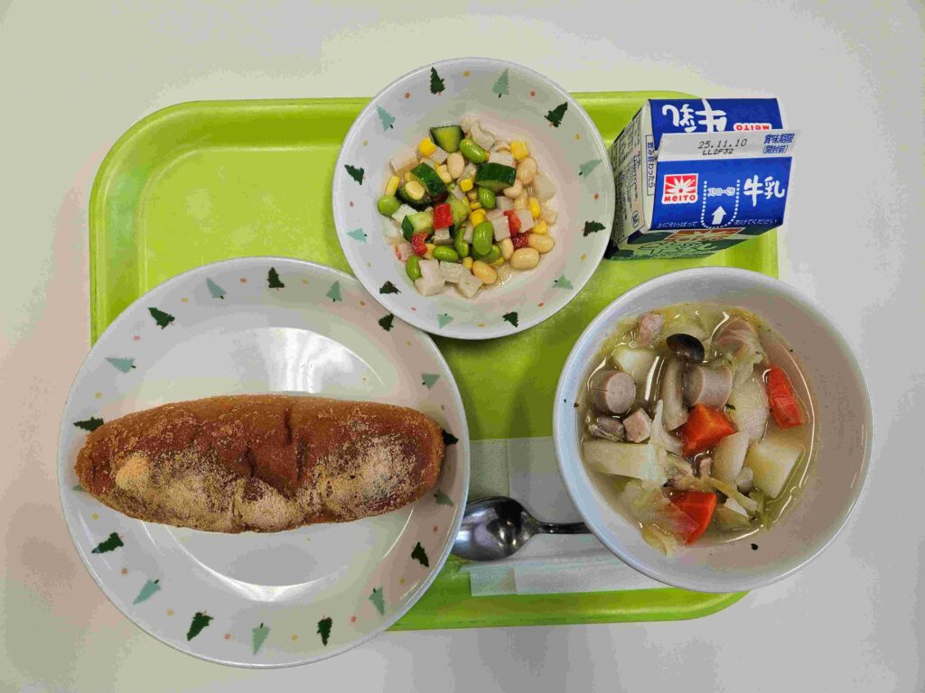 10/27に行われた開校記念集会で発表された、【給食人気投票】(代表委員会企画)で、王者『カレーライス』をおさえての第1位メニューが『きなこ揚げパン』であったことが発表されました。すぐに提供が実現し、本日11/4の献立に登場しました。
