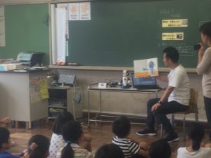 あるクラスでは、やなせたかしさんの「ロボットとことり」という本をお父さんとロボットSotaと2人?で読み聞かせをしていました。お父さんの優しい声とSotaの可愛い声に子どもたちは本の世界に引き込まれていました。