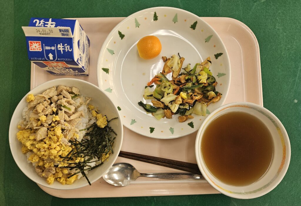 学校給食週間② 今日は鹿児島県の郷土料理である、『鶏飯』が献立に登場しています。薩摩地鶏で有名な鹿児島県では、かつてほとんどの家庭でニワトリを飼育し、祝い事や来客をもてなすときに、鶏肉を使ったご馳走をふるまっていました。その料理の一つが鶏飯です。今日の献立の一つでもある『きんかん』も鹿児島県産です。産地に関する詳しい情報は、学校HPの「食材産地」欄をご参照ください。今日もたくさん食べて、元気な体をつくりましょう。 コメントは受け付けていません。 学校給食週間(1/24~1/30)が始まりました 時刻を守る