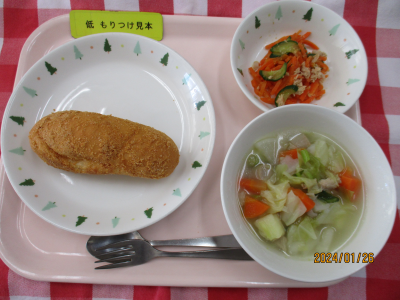 学校給食週間③ 今日は『きなこ揚げパン』です。揚げパンはすでに昭和30年ごろには給食の献立に広く登場していたようで、東京都大田区の調理員さんが昭和27年ごろに考案したと聞いています。今日のパンは揚げたてなので、とてもやわらかくて、食べやすくなっています。他には、温かいポトフとにんじんラペという副菜、牛乳です。今日もおいしくいただきました。(今日の画像は本校HPの「食材産地」と共通しています) コメントは受け付けていません。 時刻を守る 学校給食週間④
