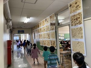 全校の児童は校舎の様々な場所に展示された作品を楽しみながら鑑賞しました。