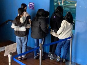 最後の見学場所、さかな公園に着きました。淡水魚に関するクイズに答えながら見学しました。