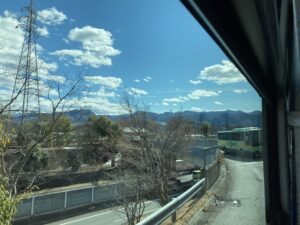 高速は順調に流れ、帰校は14時半前になりそうです。府中インター13時35分に通過しました。