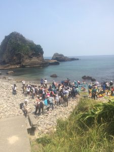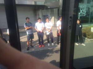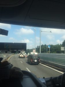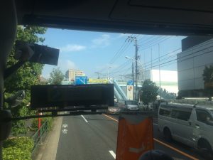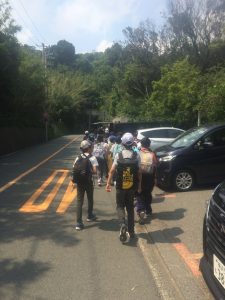 校庭での出発式を終え、弓ヶ浜に向けてバスがスタートしました。お見送りの先生たちに「行ってきまーす。 」用賀から東名に乗りました。車はスイスイ流れています。