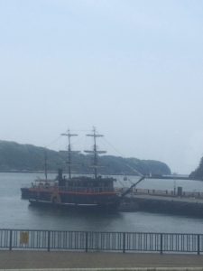 8時半に海老名SAにトイレ休憩に入りました。予定通りの進行です。伊東マリンタウンにトイレ休憩に入りました。10時半過ぎに出発しました。順調です。お昼前に下田に着きました。黒船を模したサスケハナ号が下田の海に見えて来ました。