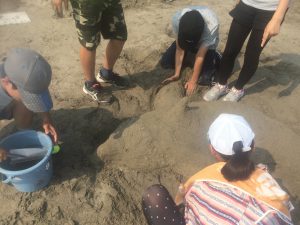 カニ、貝、ナマコ、ヤドカリなどたくさんの種類の生き物に直に触れることができました。採った生き物は活動終了後に全てリリースしました。