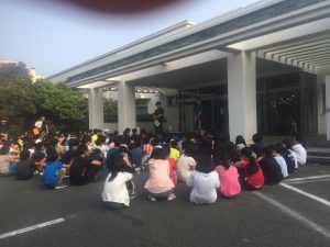 次にナイトハイクに行きました。19時半から昼と違って塩の満ちた弓ヶ浜の浜辺に行き星空を見たり、校長から海での生命体の誕生や進化の話を聞いたりし20時過ぎに宿舎に戻りました。