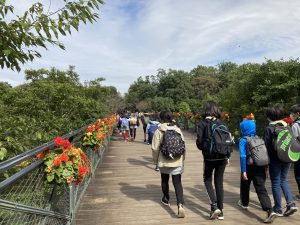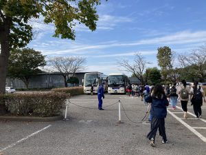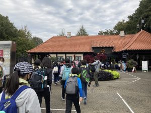 朝、7時45分予定通り井の頭通りを出発しました。今日の天気を気にかけていたと思います。1日曇り予報です。6年生、みんな元気に出発です!