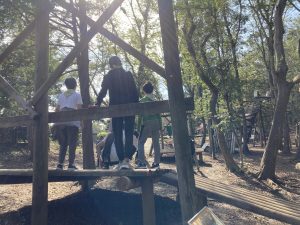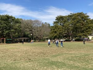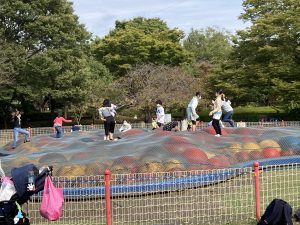 お昼を終え、アスレチックなどたくさん遊べる芝生広場へ移動しました。