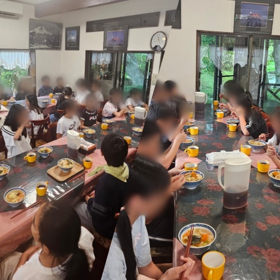 (移動教室10/6⑥)ほうとう作り④ 各民宿ごとにいただきますをした11時40分前後は、学校だと4時間目が始まる頃(笑) 朝も早かったから、ちょうどよい頃だったかと思います。時折出てくる日差し☀️もあり、心地よい風の中、体験学習を行うことができています。どんぶり4杯くらいおかわりしている子もいましたが、この後の活動大丈夫でしょうか。食後はすぐ近くのさかな公園に向かいます。 コメントは受け付けていません。 (移動教室10/6⑤)ほうとう作り③ (移動教室10/6⑦)森のさかな公園①