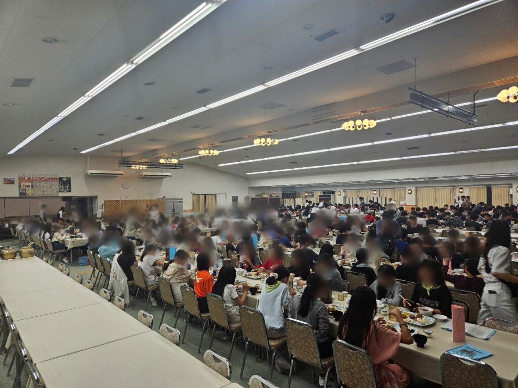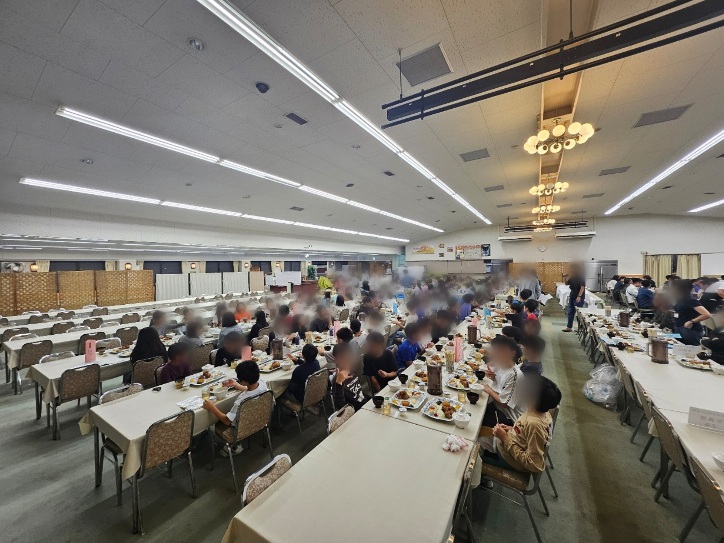 ほぼ予定どおりの18時に、宿舎でいただく最初の食事が始まりました。その前には食事係の準備、アレルギー対応食の複数名による最終確認を終えています。今日は午前から時間に余裕のある行動ができているため、入浴もレク準備も、そして食事の様々な準備も時間にゆとりがあり、とても良かったです。