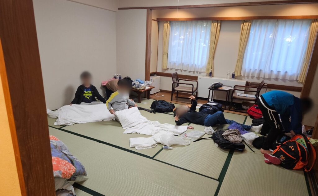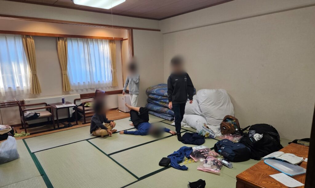 部屋の掃除も、すでに朝食前に着々と進んでいます。こちらも部屋ごとにまだ差がありますが、朝食後の一斉清掃に期待します。