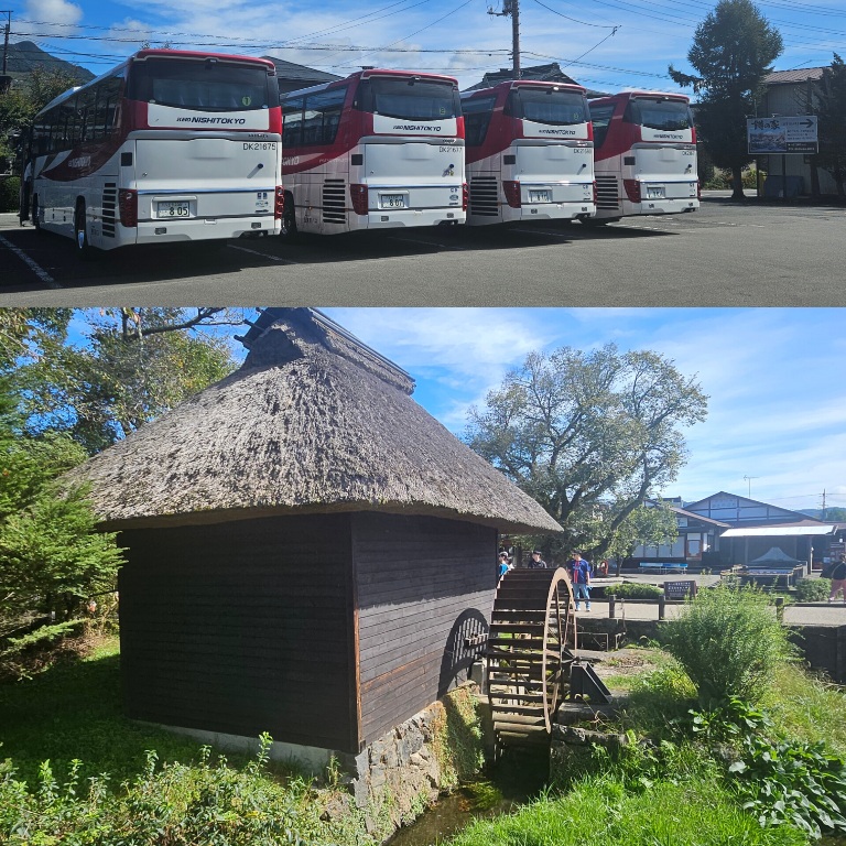 (移動教室10/8⑤)世界遺産・忍野八海 富士山世界文化遺産の構成資産の一部となっている忍野八海。フィールドワークから予定変更をしたため時間をかけた活動はできませんでしたが、午前9時半という早い時間にもかからず多くの人が訪れていました。初日のほうとう作りの場所に近いので、戻ってきてた感じがしました。画像でもわかると思いますが、昨日と違い、半袖で十分な陽気です。池や流れている川の水のキレイさに皆驚いていました。 画像4枚目(上)は忍野八海駐車場、(下)は散策したコースの脇にある水車です。 コメントは受け付けていません。 (移動教室10/8④)来た時よりも美しく (移動教室10/8⑥)クラフト体験①