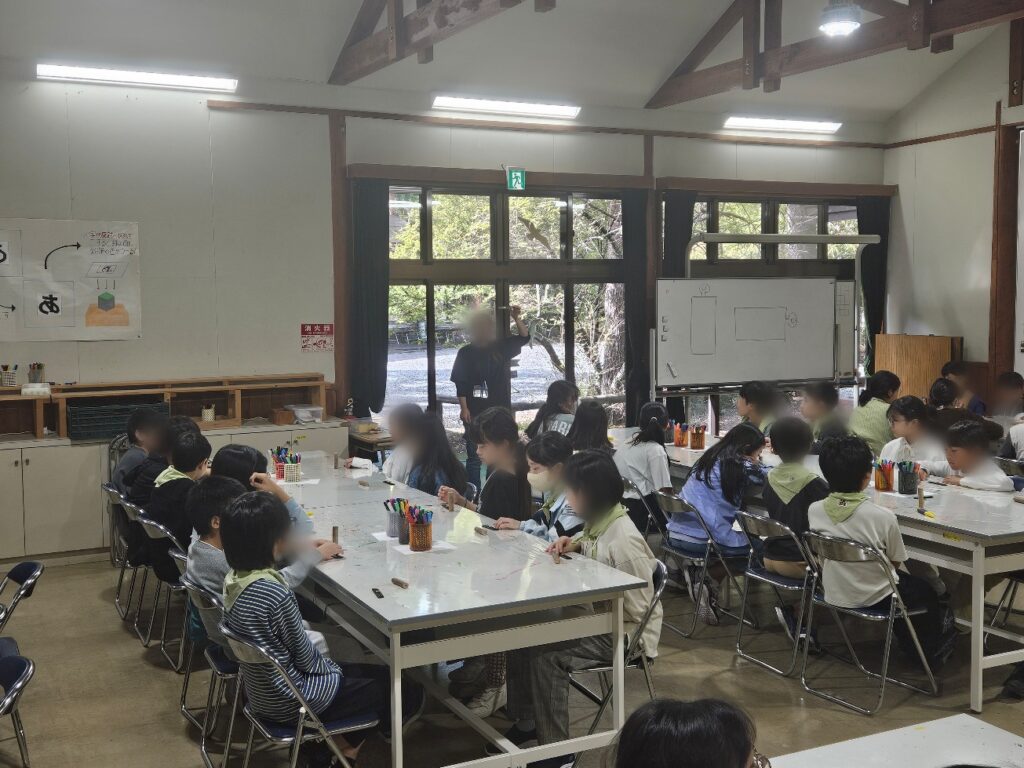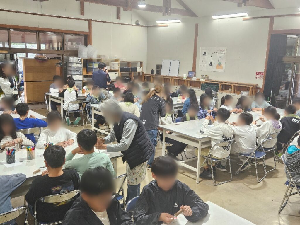 小刀で削る、色を塗る、という簡易な工程ではありますが、この「削る」作業は使い慣れていない小刀を使うので、なかなか苦戦していました。毎年のことですが、指をけがする人もいます。センターの方も安全に、そして時間内に完成するように丁寧にご説明くださいました。