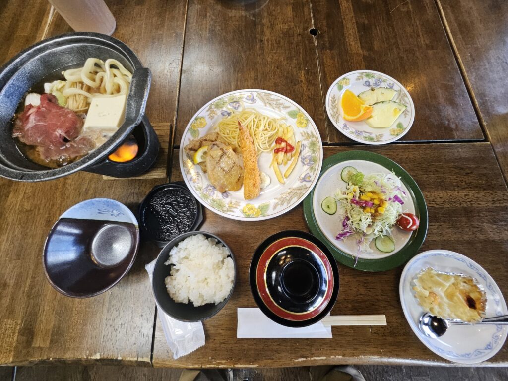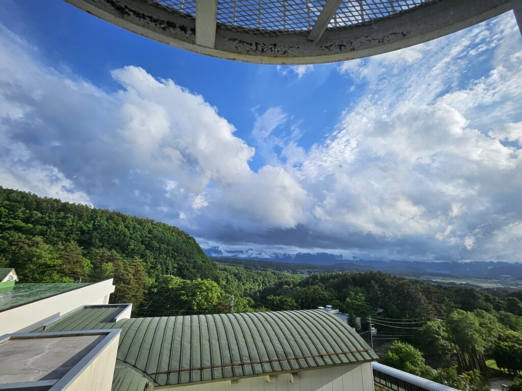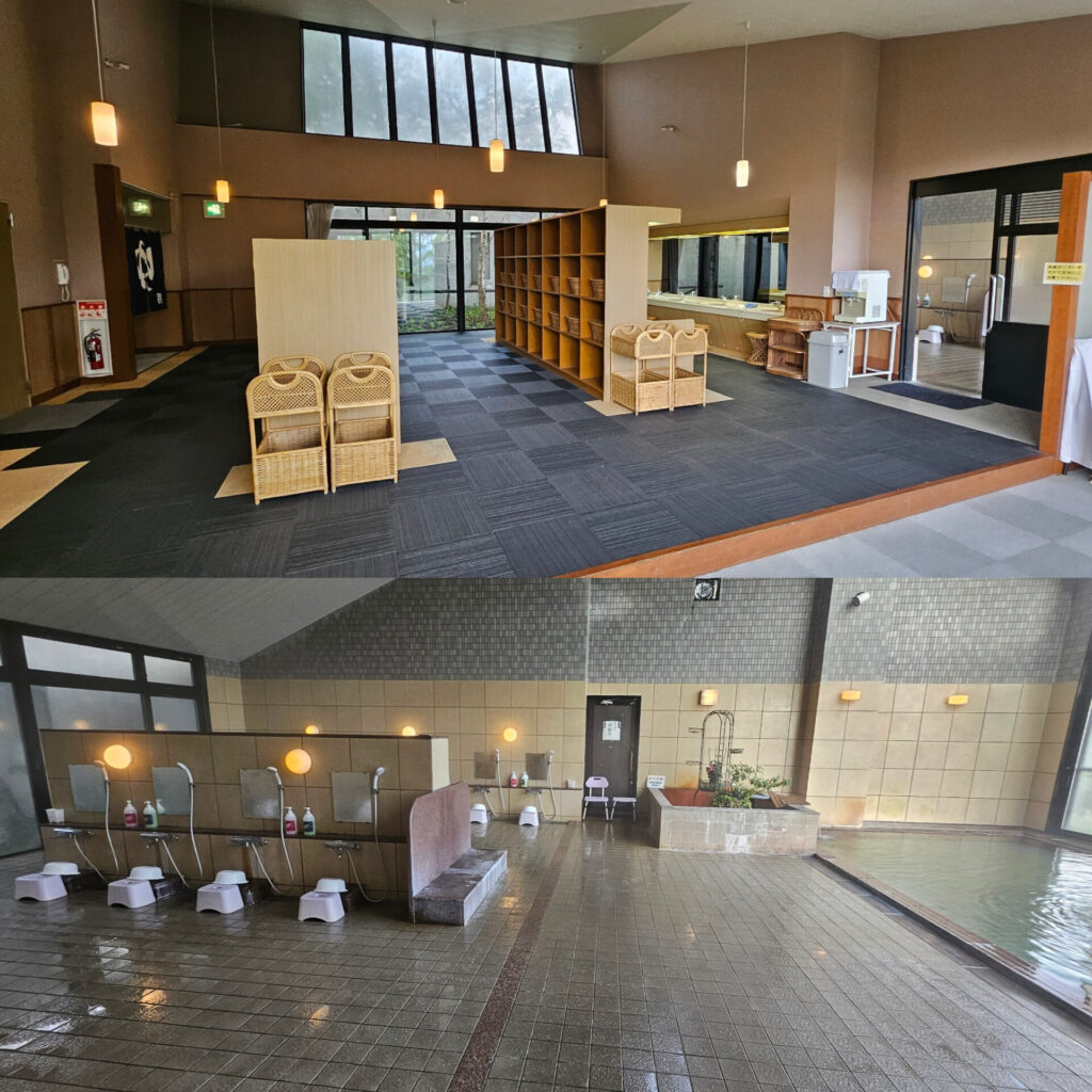 画像1枚目は16時頃に部屋の窓から見えた晴れ間🌤️です。明日は予定どおりの行程ができそうです。男子浴場は「使用後」です。きれいに片付けています。