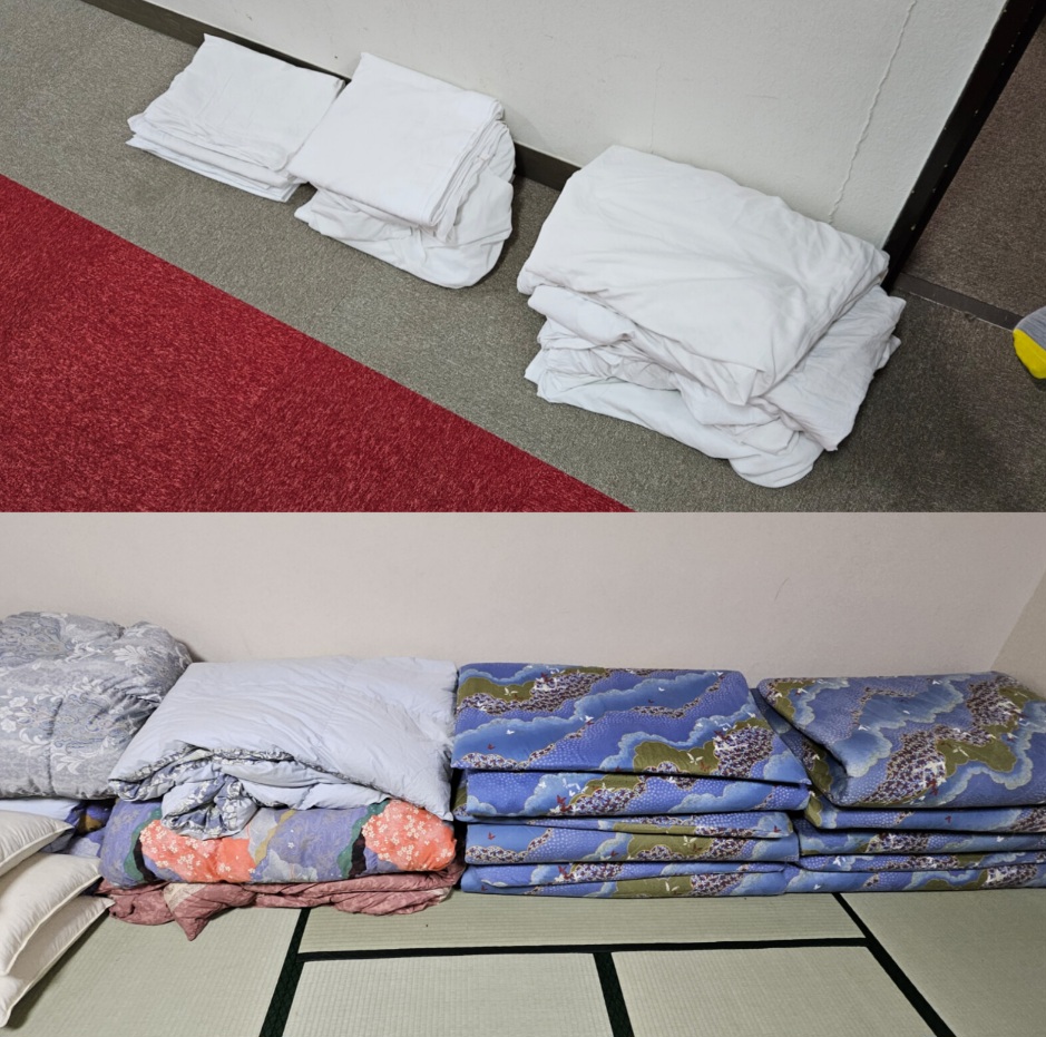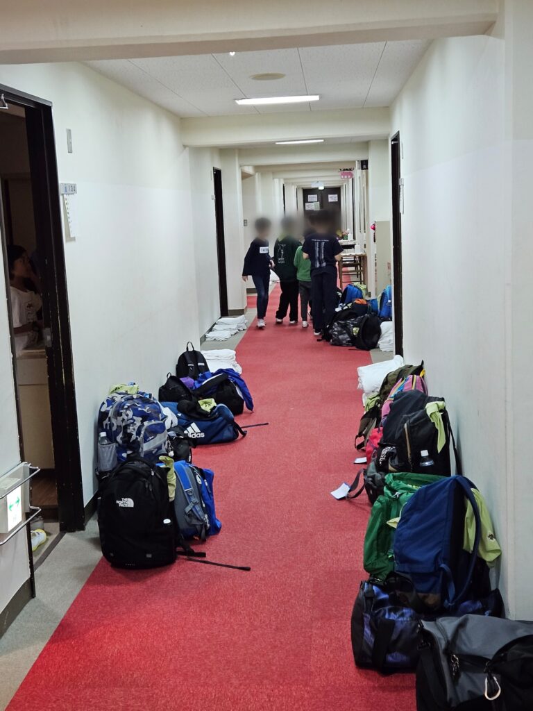 『荷物整理』『布団、シーツの片付け』『部屋の掃除』という、移動教室3日目朝恒例の、一大イベントが始まりました。「布団を片付ける」「シーツを取ってたたむ」という行為自体、ほとんどの児童は経験がないのではないでしょうか。そんな中でも事前の指導や班の協力で、なんとか頑張っています。声を掛け合う、二人組で効率よくきれいにたたむ…ことも、ここで学んでいます。全室、閉校式に間に合うでしょうか。