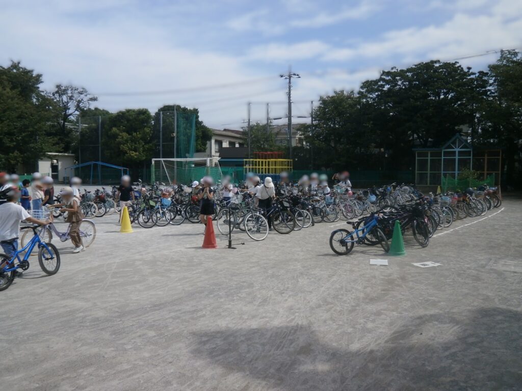 いわゆる「自転車安全教室」です。今年度も高井戸警察署の皆様と多くの保護者の方々のお手伝いをいただきがら実施することができました。児童の自転車事故に関する統計は、統計元が違うと若干の違いがあり、警察庁だと「小学校2年生」が一番多く(令和元年~5年)、警視庁だと「小学5年生」(令和7年度上半期)となっています。いずれにせよすべての学年で注意が必要です。