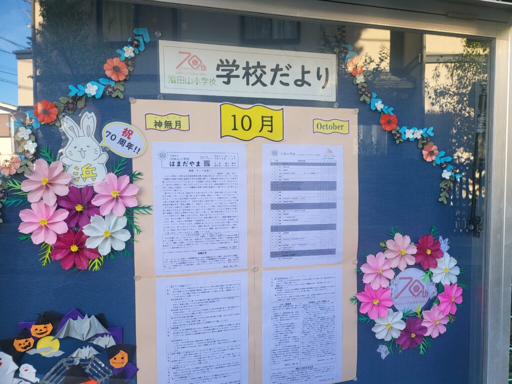 10月に入りました 10/2月曜朝会の時刻8:30、校庭にはまだまだ夏を思わせる強い日差しが照り付けていましたが、朝晩はかなり涼しくなってきました。2学期が始まり1か月というこの時期ですが、学年で考えると半分が過ぎたことになります。令和5年のうさぎ年は残り3か月となり、今後は「残りの期間の過ごし方」も大切になってきます。残り半期もどうぞよろしくお願いいたします。 コメントは受け付けていません。 地域の商店街でも応援をいただいております インフルエンザが流行しています 2
