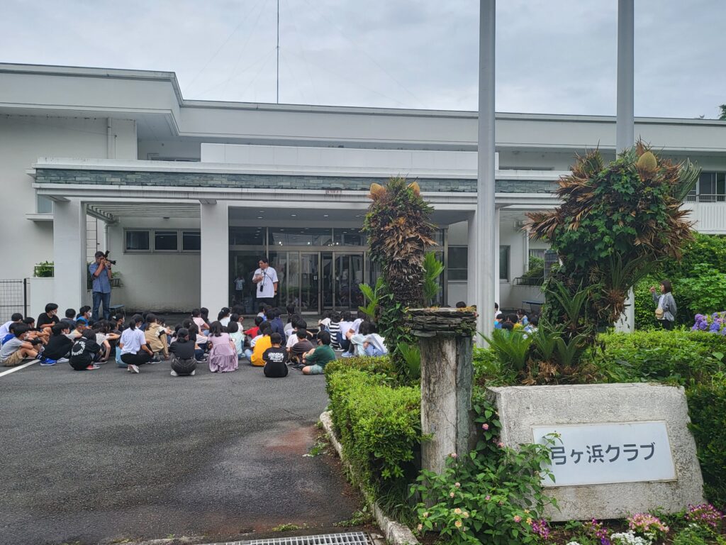 14時頃、無事に弓ヶ浜クラブに到着いたしました。全員元気です。開校式、部屋の確認後、すぐに避難訓練を行いました。宿舎は海沿いで、大きな地震に伴う津波の危険性が高いので、高台(海抜35m)への避難訓練は必須です。6月は「いのちの教育月間」でもあり、どこへ行っても自分の命は自分で守る意識をもたせるようにしたいです。この時間帯には薄日☀️も差してきて、暑さを感じるようになりました。