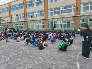 予定時刻よりも30分近く遅れての学校到着でした。最後の到着式を終え、二泊三日の移動教室が終了いたしました。帰宅後に体調不良になる場合もありますので、何かありましたら後日学校までご連絡ください。