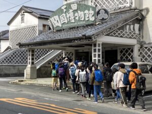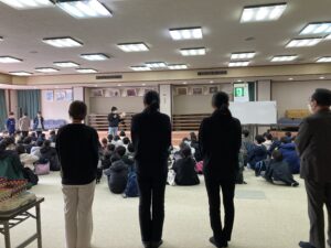 14時半、宿舎の弓ヶ浜クラブに着きました。開校式を行い、避難訓練をしました。津波を想定しての裏山への避難です。