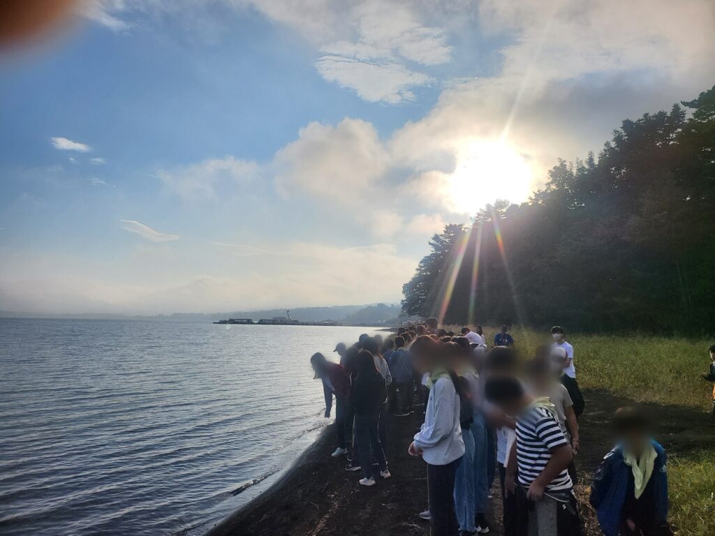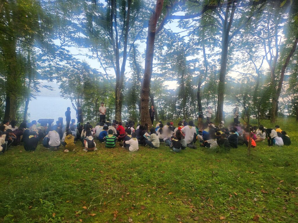 (9/28①)おはようございます 朝5時30分の気温は17℃。標高1000mの地でこの時期としては暖かめの朝を迎えています。ほぼ全員の児童はぐっすり眠っていました。6時40分から湖畔での朝会、全員での記念撮影、朝食、出発準備と慌ただしい時間を過ごします。今日は明神山登山です。 コメントは受け付けていません。 (9/27⑦)就寝時刻が近付いてきました (9/28②)登山に向かいます