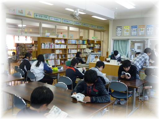 東原中学校の学校図書館は、第2校舎(西側校舎)2階に設けられており、