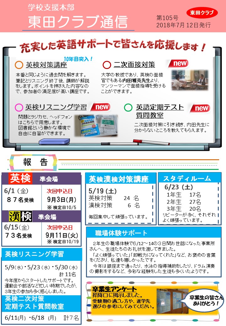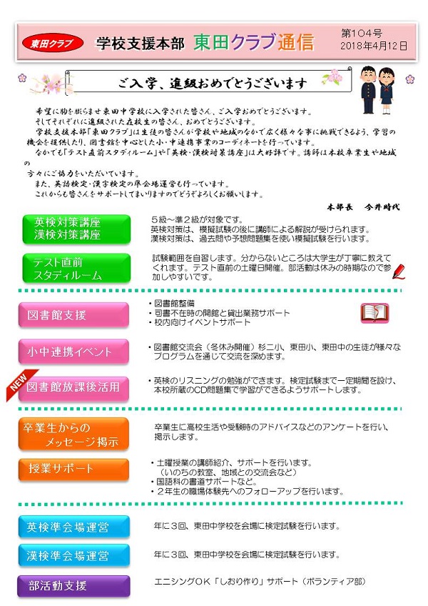 東田学校支援本部 ◆東田クラブ通信 ◆学校支援本部のお知らせ