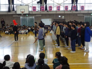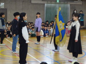 全学年2月29日(木)、6年生を送る会を行いました。憧れの6年生と手をつないで入退場する1年生は満面の笑顔、6年生は照れたような誇らしげな表情を見せていました。各学年は出し物を発表し、6年生への感謝の気持ちを表しました。6年生からもお礼の出し物があり、「ありがとう」の気持ちを伝え合うことができました。最後は、5年生が児童会旗を引き継ぎました。6年生は残り少ない小学校生活ですが、悔いのないように過ごして井荻小を巣立っていってほしいと思っています。