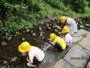 6月25日の善福寺公園自然体験では、1年生がネイチャーゲームを行いました。公園を散策する中で、「きのこを見つけた!」「きれいな色の葉っぱがあった!」といった子どもたちの元気な声が溢れていました。一人ひとり、様々な発見があったようです。また、『フクロウとカラス』という〇×ゲームを通して、公園の使い方や生き物のことを学びました。川や林に住む生き物たちと触れ合い、自然を身近に感じることができました。