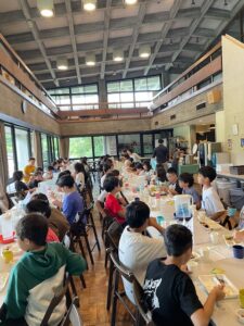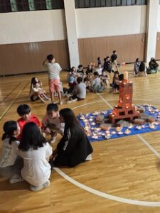 5年生が富士移動教室に行ってきました。1日目は、山梨の郷土料理ほうとうを作って食べたり、富士科学研究所で体験アクティビティをしたりしました。宿泊場所は、本栖湖スポーツセンターです。開校式、避難訓練、ベッドメイキング、入浴、食事準備と、子どもたちは、はりきって全てのことを乗り越えた1日目でした。夜は、キャンドルファイヤーは大興奮。マイムマイム、猛獣狩り、ジェンガなど、楽しい時間を過ごせたのは、レク係の準備のおかげです。