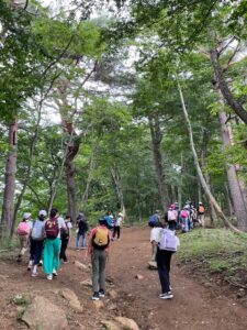 2日目は、コウモリ穴、三湖台ハイキング、富士湧水の里水族館、お土産の購入と盛りだくさんの一日でした。三湖台ハイキングでは、みんなで声を掛け合いながら山頂を目指して登りました。子どもたちは本当に疲れた様子でしたが、お土産の購入では、また元気いっぱいな姿を見ることができました。時間を守り、声を掛け合って行動することが少しずつできるようになってきた2日目でした。