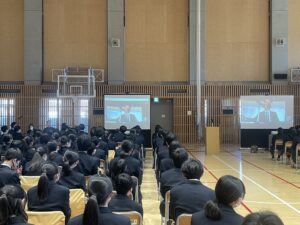 小中一貫教育校ならではの様子です。 小学校の先生の話をオンラインで聞きました。