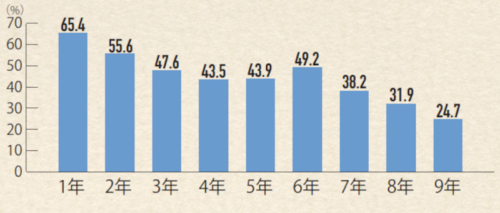どの学年でも6割以上の保護者さんが 小中一貫教育のこどもへのプラスの効果を認識されています。